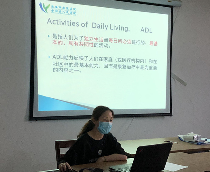 第一课的课程内容包括:培训导师、康复医学科护士长徐在秀的《康复护理概述》和培训导师陈晓丽的《日常生活活动能力评估》。在场人员认真听课并实时做好学习笔记,学习氛围浓郁。