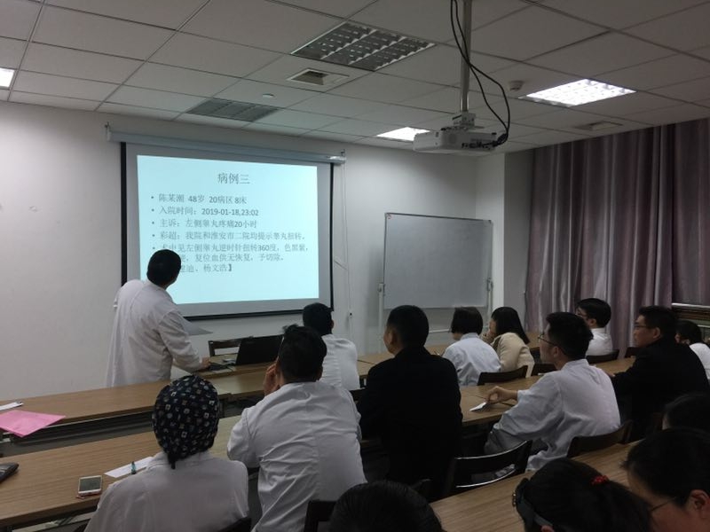 2019年3月19日晚18:30在外科示教室,大外科郝宝金主任组织了开展了业务学习,业务讲座的题目为“睾丸扭转的病例分享”,大外科全体人员参加了此次活动。郝主任分别从疾病的定义、病因、鉴别诊断、体征、治疗等方面做了详细的介绍。还与各位同道分享了近期治疗的5例急性睾丸扭转的病例。让大家对这一疾病有了更深入的了解,尤其是拓展了年轻医生的知识面。