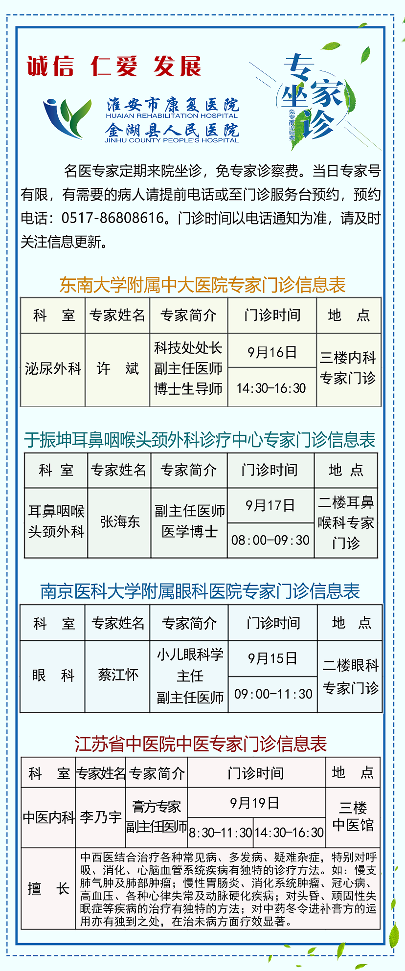 名医、专家坐诊信息