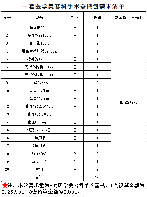 为满足医学美容科日常工作开展,近期,金湖县人民医院将对医学美容科手术器械包进行竞争性磋商,现邀请符合条件的投标人参加投标。