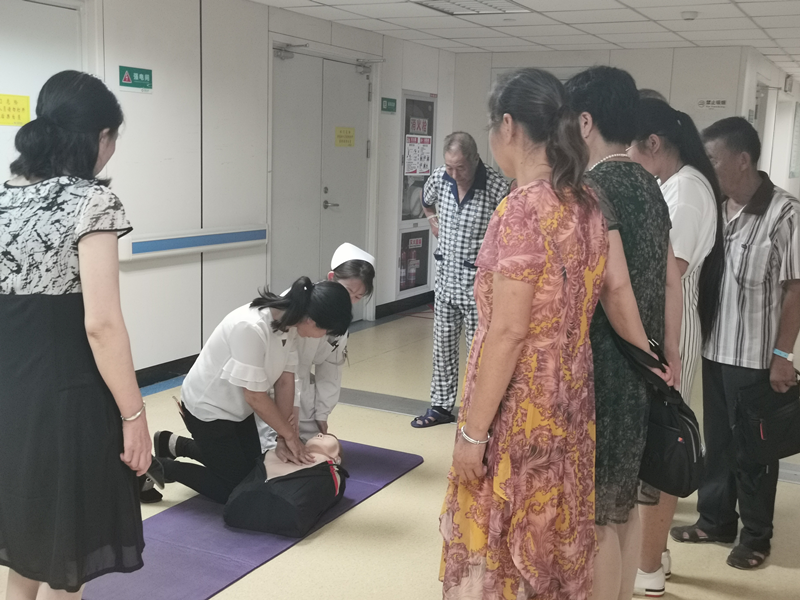 随着人们生活水平的提高,工作节奏的加快,压力的增加,急性心肌梗死患者发病率日渐增高,且年龄趋于年轻化。为能在第一时间挽救患者的生命,心血管内科护理团队积极开展指导冠心病、急性心肌梗死患者家属出院前掌握新技术——心肺复苏术,得到患者及家属的欢迎。在患者住院期间,集中组织家属进行现场示范培训,从如何判断患者状况到操作步骤讲解,再到操作示范,手把手教会患者及家属,直至掌握整个操作流程。