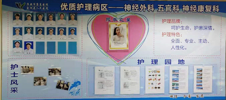 患者,可以说是一个特殊的群体,他们在承受着躯体上病痛折磨的同时,还有对死亡的恐惧、对生的渴望。开展优质护理,以病人为中心,强化基础护理,全面落实责任制整体护理,深化护理专业的内涵,整体提升护理服务水平,这是优质护理服务理念,也是我们的职责。为了能够给患者提供无缝隙护理,保证基础护理的全面落实,我科开展全面、专业、主动、人性化优质护理服务特色,我们希望患者在我科住院期间能得到全面、专业、主动、人性化服务,能在治疗疾病同时,达到最好层次的康复。